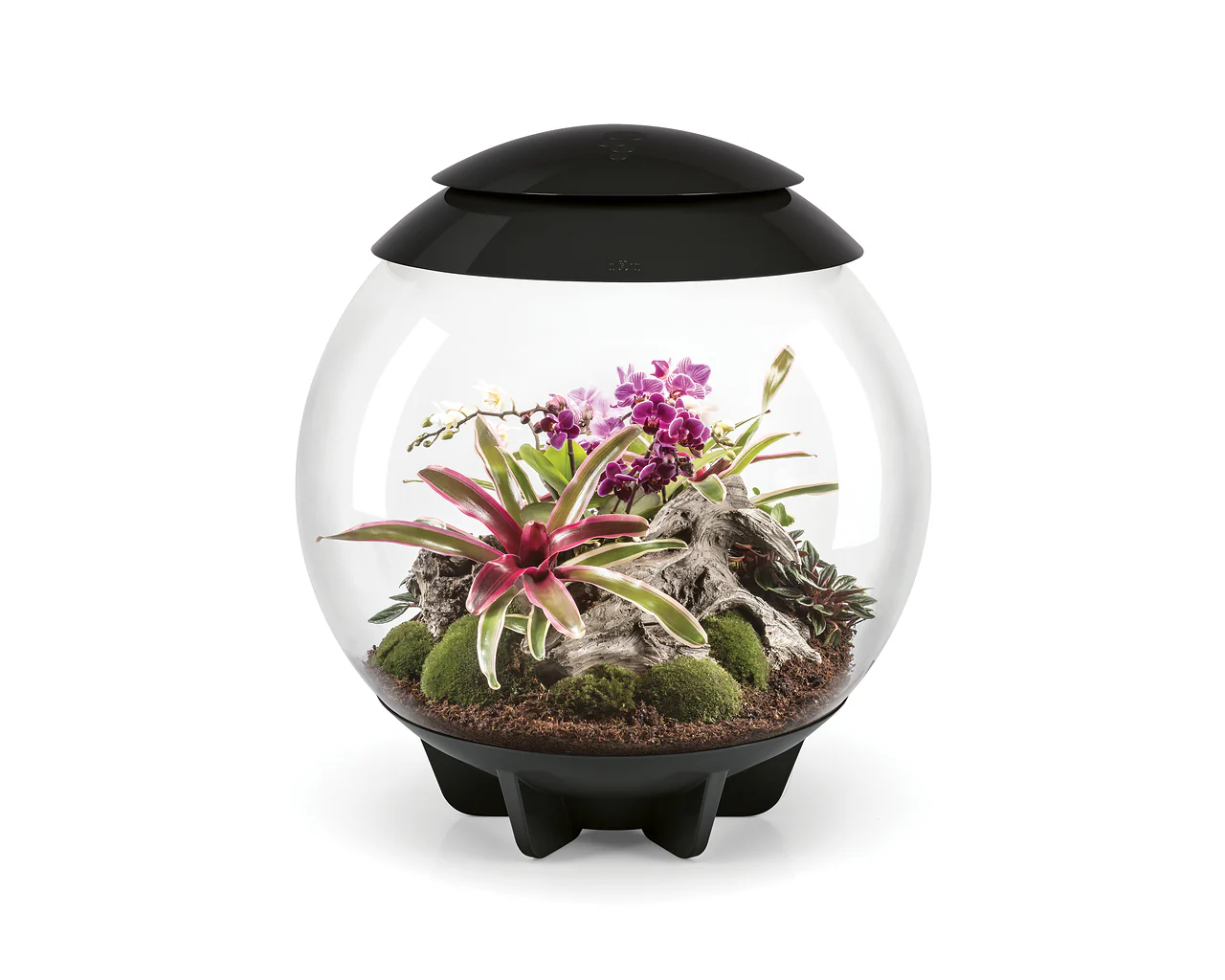 Das biorb AIR 60 ist ein automatisiertes Terrarium, in dem Luftfeuchtigkeit, Lichtverhältnisse und Luftzufuhr stets reguliert werden. So können tropische Pflanzen gezüchtet werden, die unter normalen Umständen gar nicht wachsen würden.
