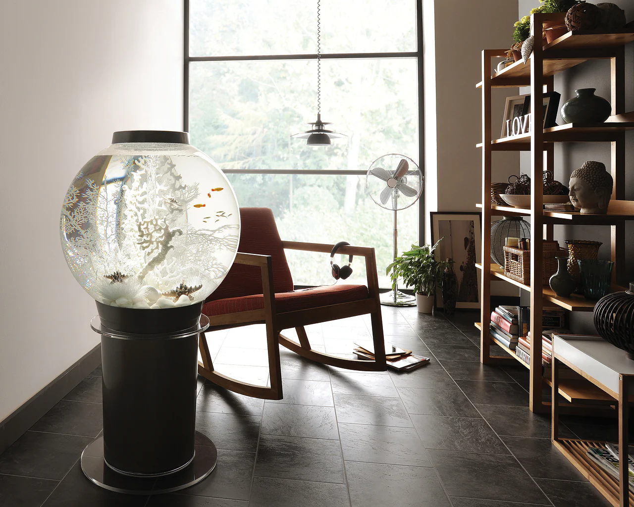 Das patentierte Filtersystem ist am Boden im schwarzen Fuß des Aquariums verborgen. Die Kombination aus biologischer, chemischer und mechanischer Filterung macht aus dem biOrb ein vollständig gefiltertes Aquarium.