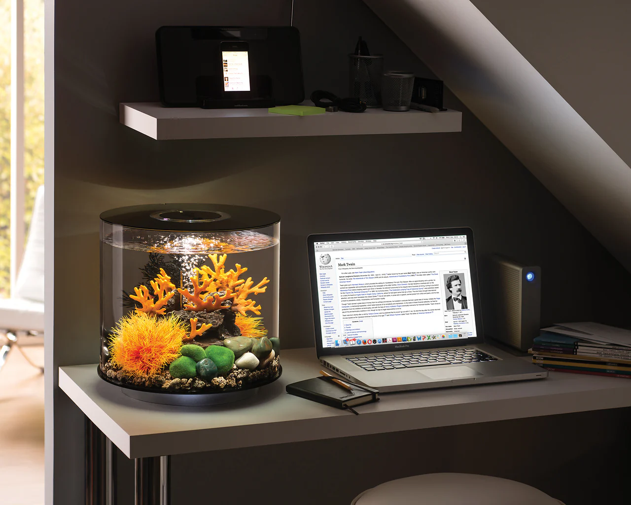 biOrb TUBE LED Aquarien ermöglichen den 360 Grad Rundum-Blick mit Standard-LED Beleuchtung und patentiertem Filtersystem.